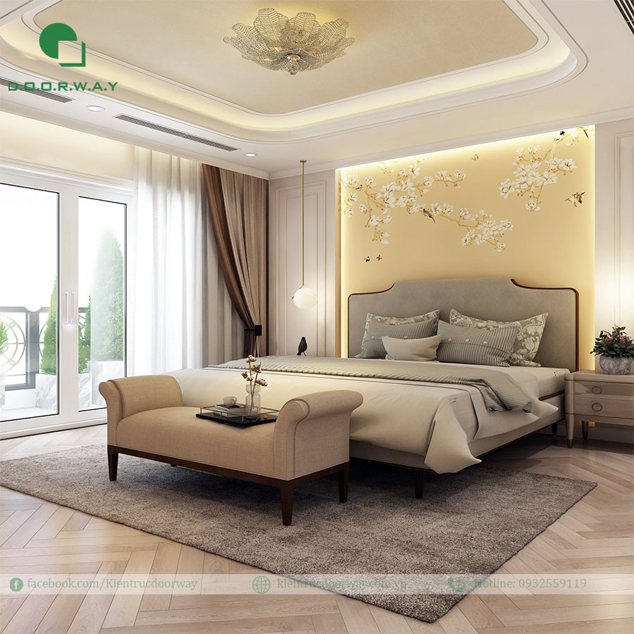 Thiết kế phòng ngủ master đẹp là nơi mà bạn có thể nghỉ ngơi thực sự. Mỗi một ngôi nhà đều có một phòng ngủ Master, đó là một phòng ngủ lớn nhất của chủ nhà, được đầu tư và thể hiện gu thẩm mỹ của gia chủ. Dưới đây là 2 phương án thiết kế nội thất phòng ngủ Master tại biệt thự An Hưng mang phong cách Tân cổ điển hiện đại được thiết kế bởi kiến trúc sư D.O.O.R.W.A.Y:
