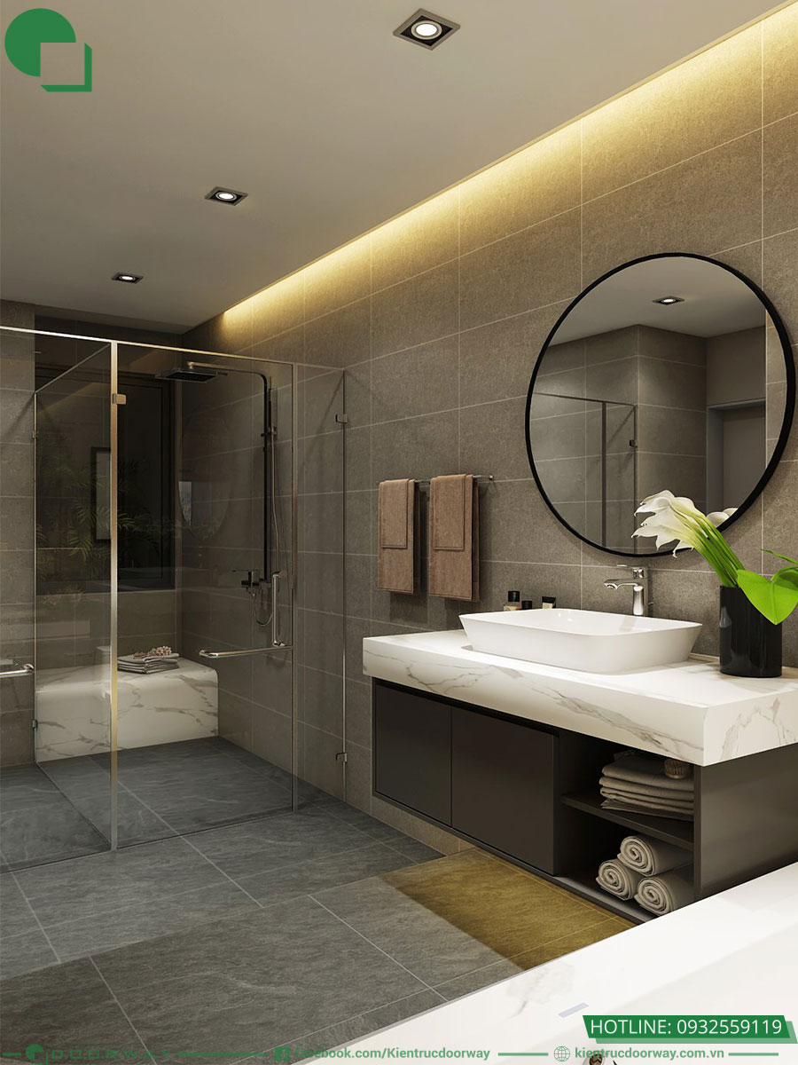 Không gian phòng tắm liền với phòng ngủ đươc thiết kế hiện đại và tiện nghi