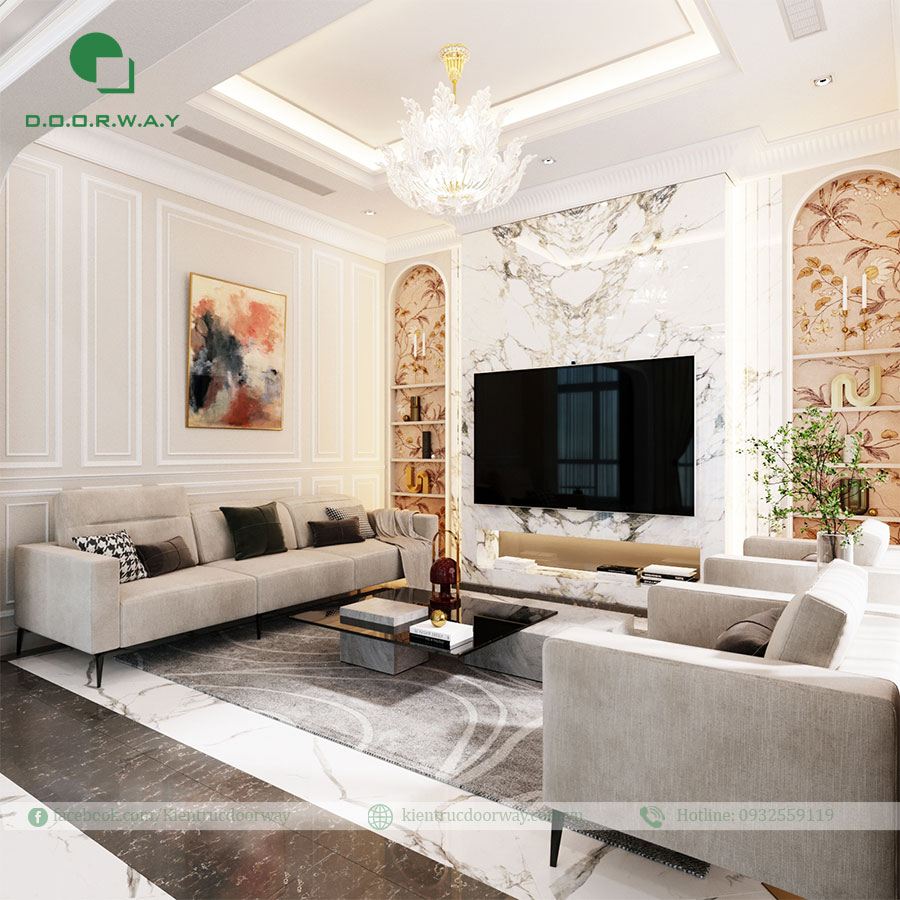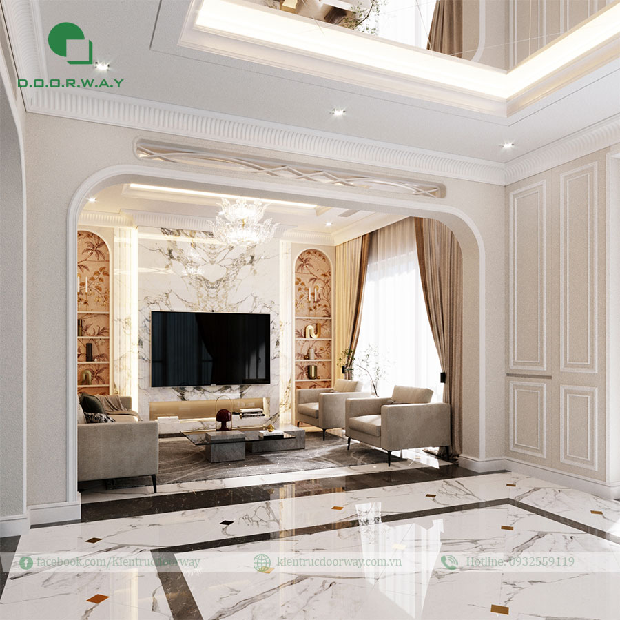 2.2 Nội thất phòng khách biệt thự phong cách tân cổ điển